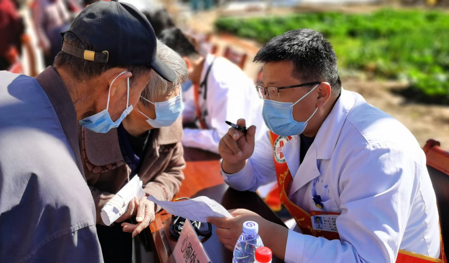 10月15日、10月23日,滨州市人民医院党团志愿服务医疗队先后到无棣县小泊头镇张义井村和北高村开展了义诊活动。来自心血管内科、内分泌科、骨科、普外科、妇科等科室的25名医疗队队员为当地居民开展了健康信息登记,血压、血糖、血脂、血红蛋白、心电图检测,多学科会诊等健康义诊服务及健康生活方式宣传。