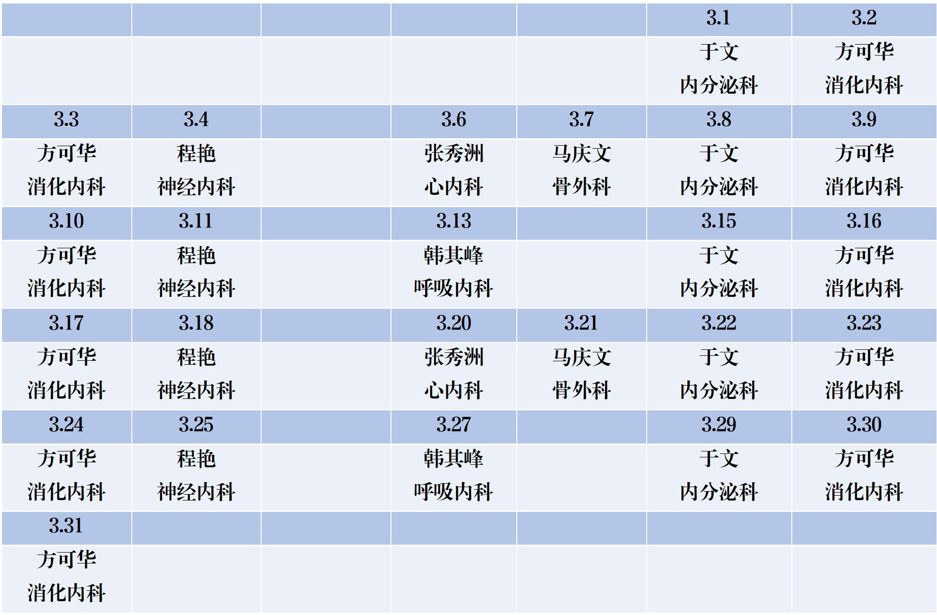 机关院区门诊医生值班表