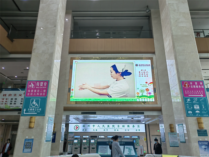 东、西院区门诊大厅电子屏及病房楼电子屏滚动播放手卫生宣传资料和视频。