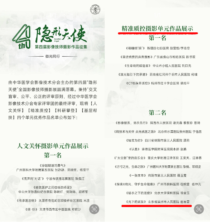 滨州市人民医院作品在第四届全国影像技师摄影大赛获奖
